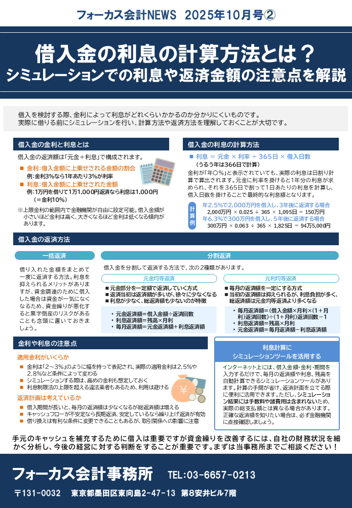 【2025年10月号②】フォーカス会計NEWS(借入金利息の計算方法)